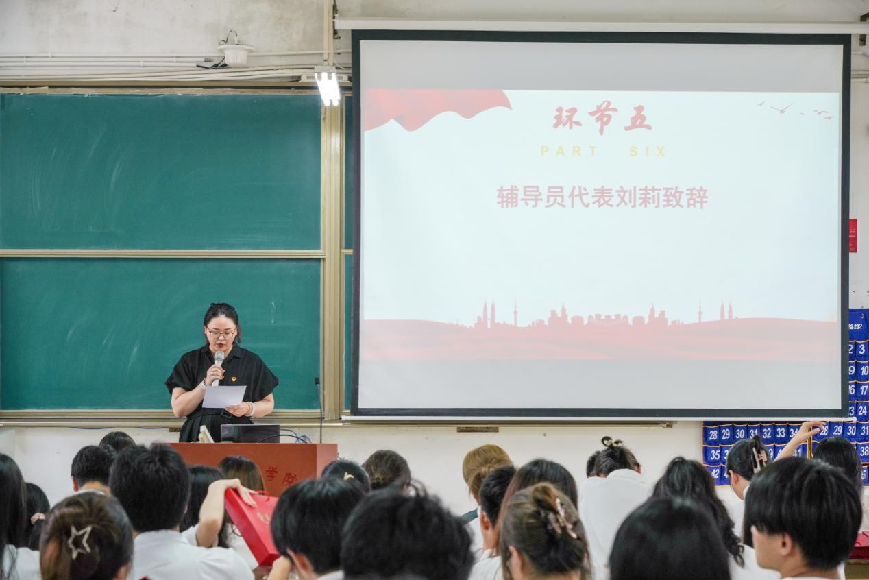 活动最后,毕业班辅导员代表刘莉老师致辞。她带领毕业生党员回顾了在校四年的美好时光,鼓励毕业生们要始终保持对知识的热爱和追求,不忘初心、砥砺前行,继续在平凡的岗位上脚踏实地、奉献力量。