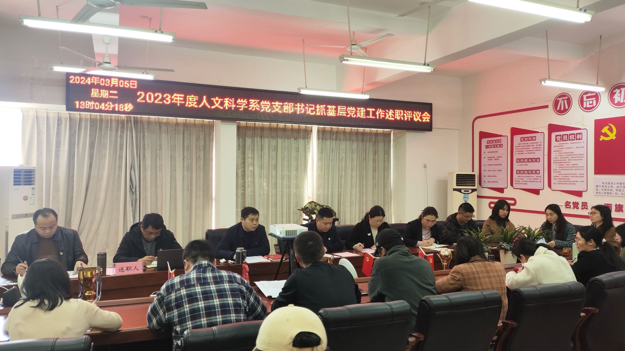 本网讯:3月5日下午,买球体育官方网站召开2023年度党支部书记抓党建工作述职评议会议。招生就业处副处长、人民武装部副部长杨智勇到会点评指导。会议由人文科学系党总支书记李国鹏主持。人文科学系党总支成员、各党支部书记、部分党员和群众代表参加会议。
