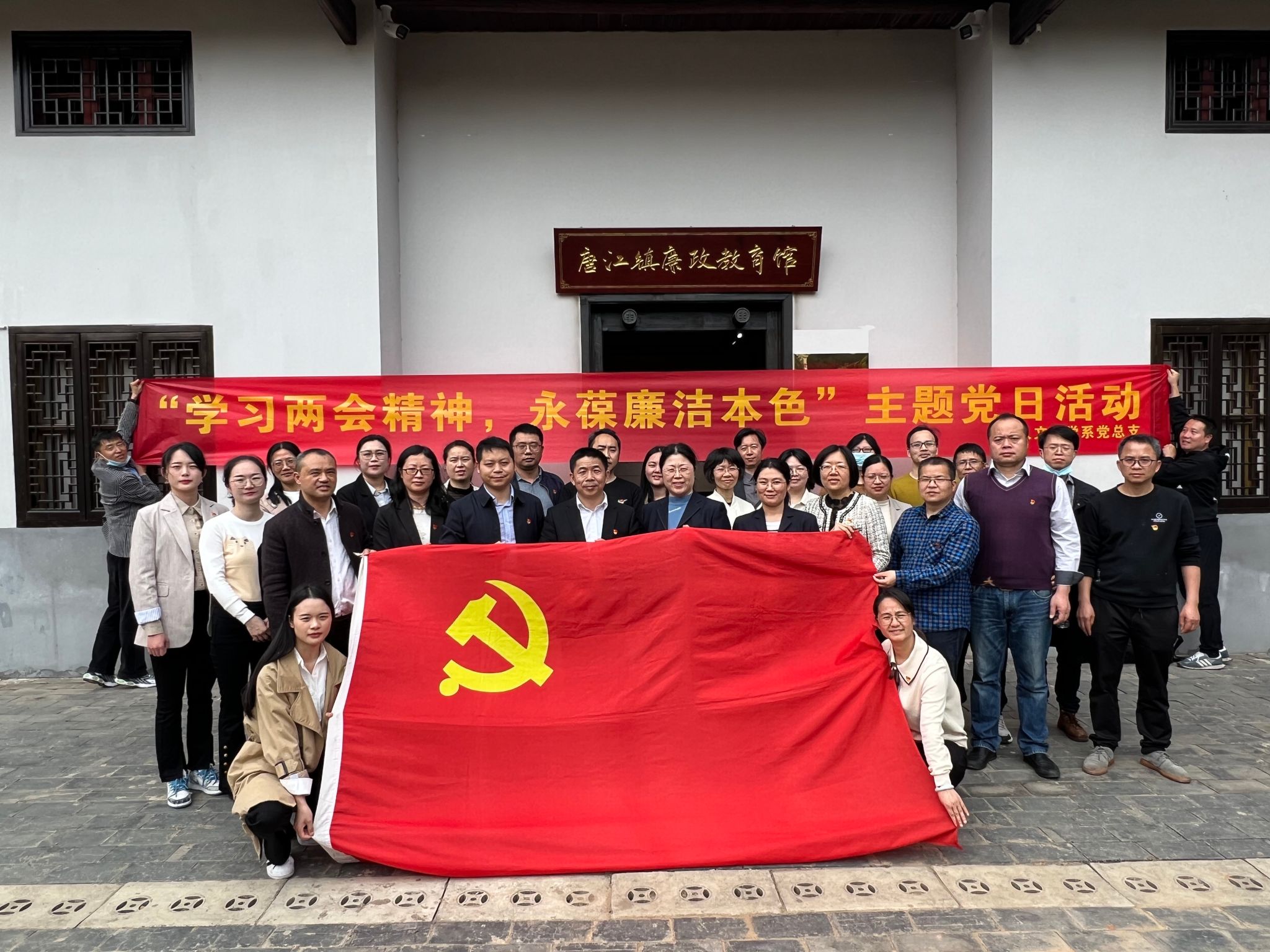 为贯彻落实党的二十大精神和全国两会精神,坚定不移推进全面从严治党,进一步提升党员廉洁自律意识,凝聚思想合力、战斗合力,不断优化工作作风,3月21日,人文科学系党总支赴唐江镇廉政教育馆开展了“学习两会精神 永葆廉洁本色”主题党日活动。人文科学系全体教工党员、民主党派和无党派人士代表参加了本次活动。