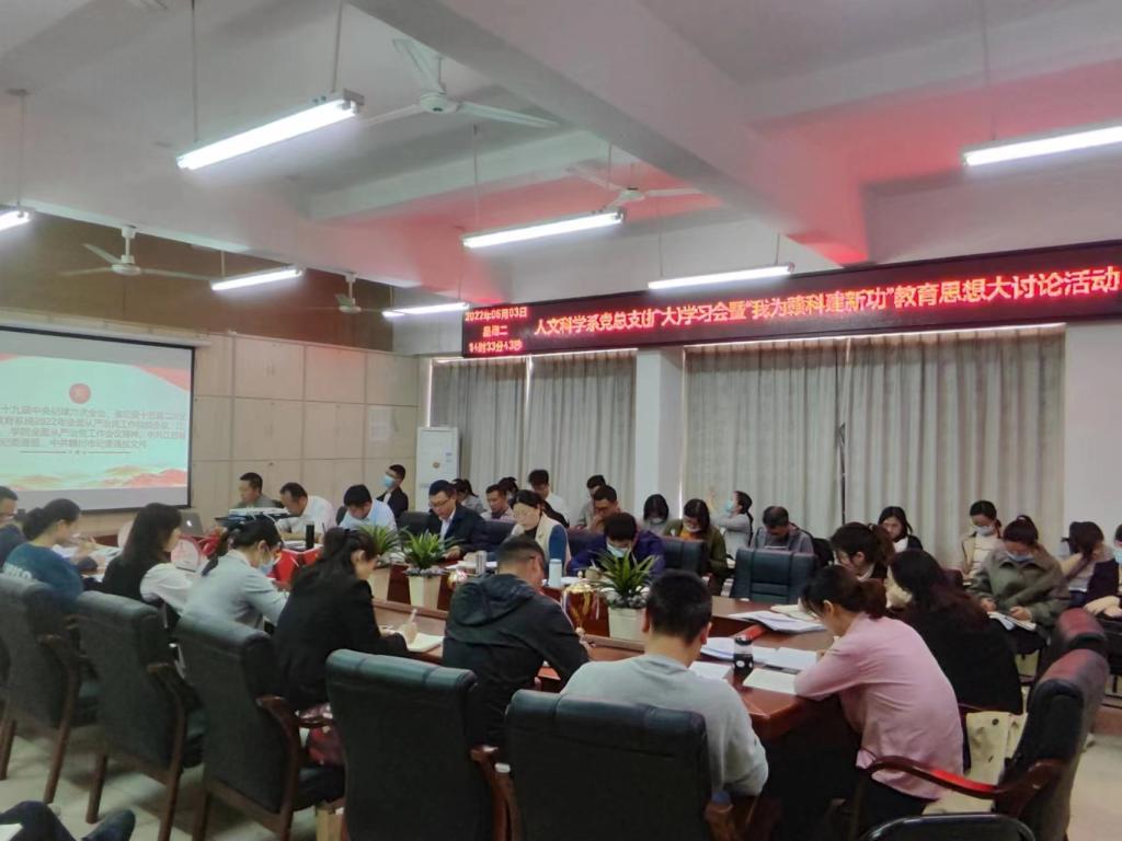 人文科学系主任高健婕传达上级关于全面从严治党工作会议精神,通报了我省10起及我市6起违反中央八项规定精神典型问题的文件。同时,她就学院关于开展“我为赣科建新功”教育思想大讨论活动的相关工作进行了部署,她指出,开展“我为赣科建新功”思想大讨论活动是认真学习贯彻党的十九大和十九届历次全会精神,深入贯彻落实习近平总书记关于教育的重要论述,努力落实省第十五次党代会和市第六次党代会精神,在学校转设过渡之际,结合买球体育“第二次创业”这一发展阶段和具体实际,推进学校高质量跨越式发展的重要举措,全体教职工要全面学习领会的文件精神和工作要求,积极主动参加大学习、大讨论活动。