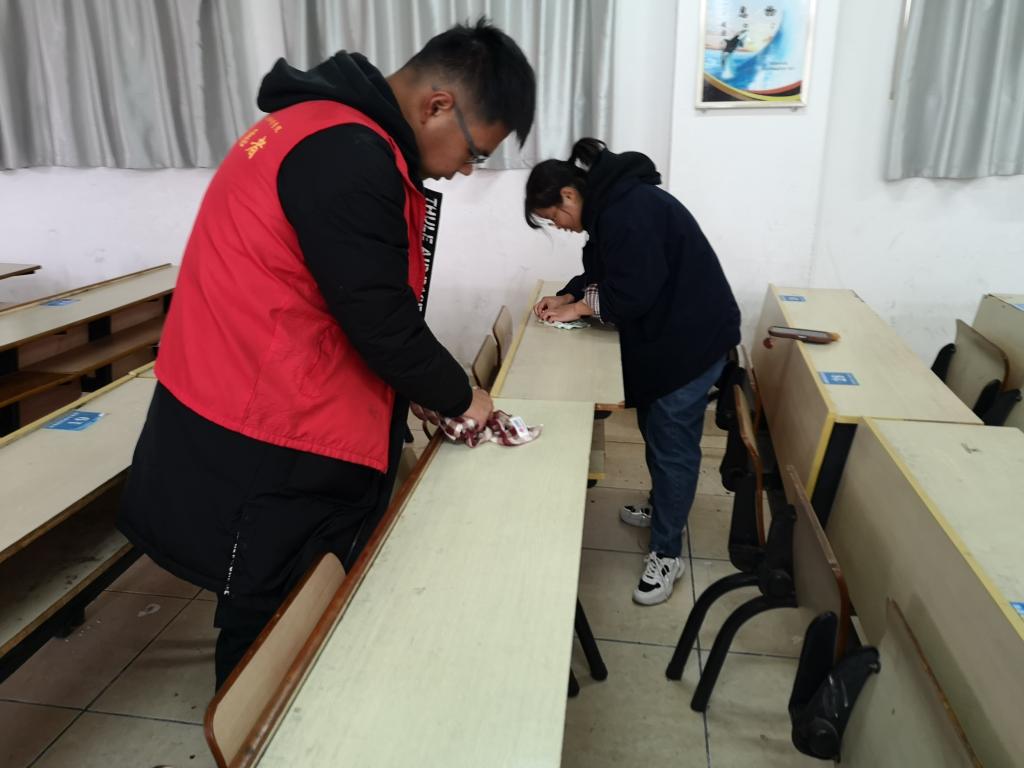 早上八点二十分,志愿者们准时抵达了买球体育教学主楼前集合,随后分工清理校园内的各种垃圾广告,花丛中的烟头、塑料等垃圾,同时擦除主教学楼教室课桌上的涂画痕迹。清扫活动在同学们严谨活泼的氛围中有序高效地进行。