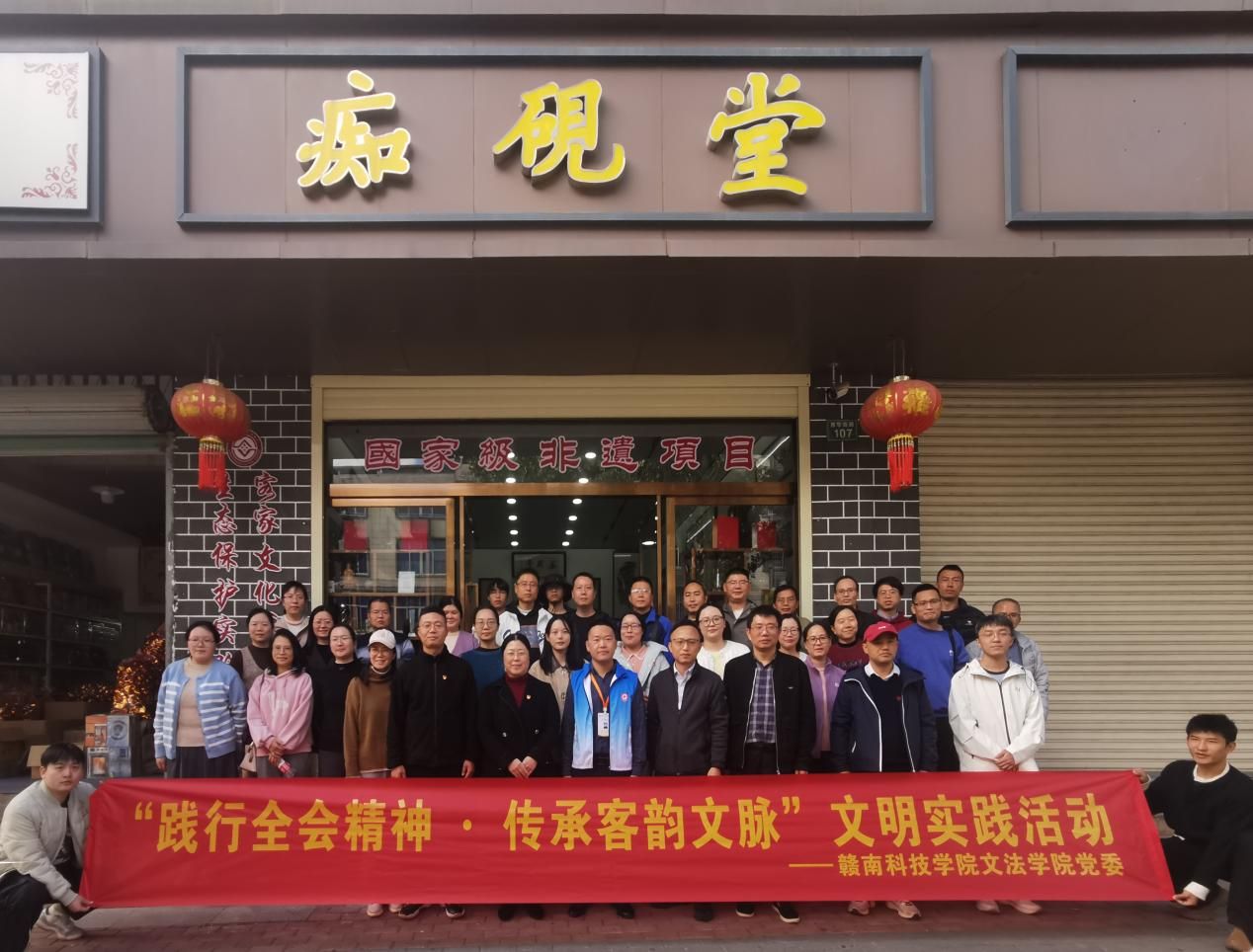 夕阳西下,党日活动接近尾声。此次石城之行,将红色教育与文化传承有机结合,既让党员们在历史回望中坚定了理想信念,又在非遗体验中增强了文化自觉。大家一致表示,今后将以革命先烈为榜样,以非遗传承人为标杆,把学习成果转化为教学科研与服务社会的实际行动,在砥砺奋进的新征程中展现文法人的使命与担当。
