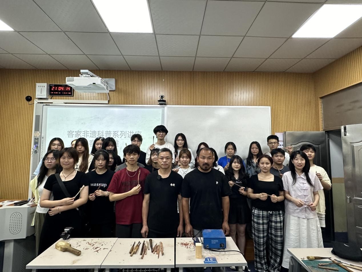 非遗传承人付先斌向同学们介绍了“客家根雕”的起源与发展,并向同学们分享自己的根雕作品和创作经历,期间,以一位同学作为模特,现场展示根雕的技法,将讲座气氛推入高潮,他富有创造力的作品让大家深深感受到了“客家根雕”的艺术魅力,激发了同学们对“客家根雕”浓厚的兴趣,深刻体会了“执着专注、精益求精、一丝不苟、追求卓越”的工匠精神。