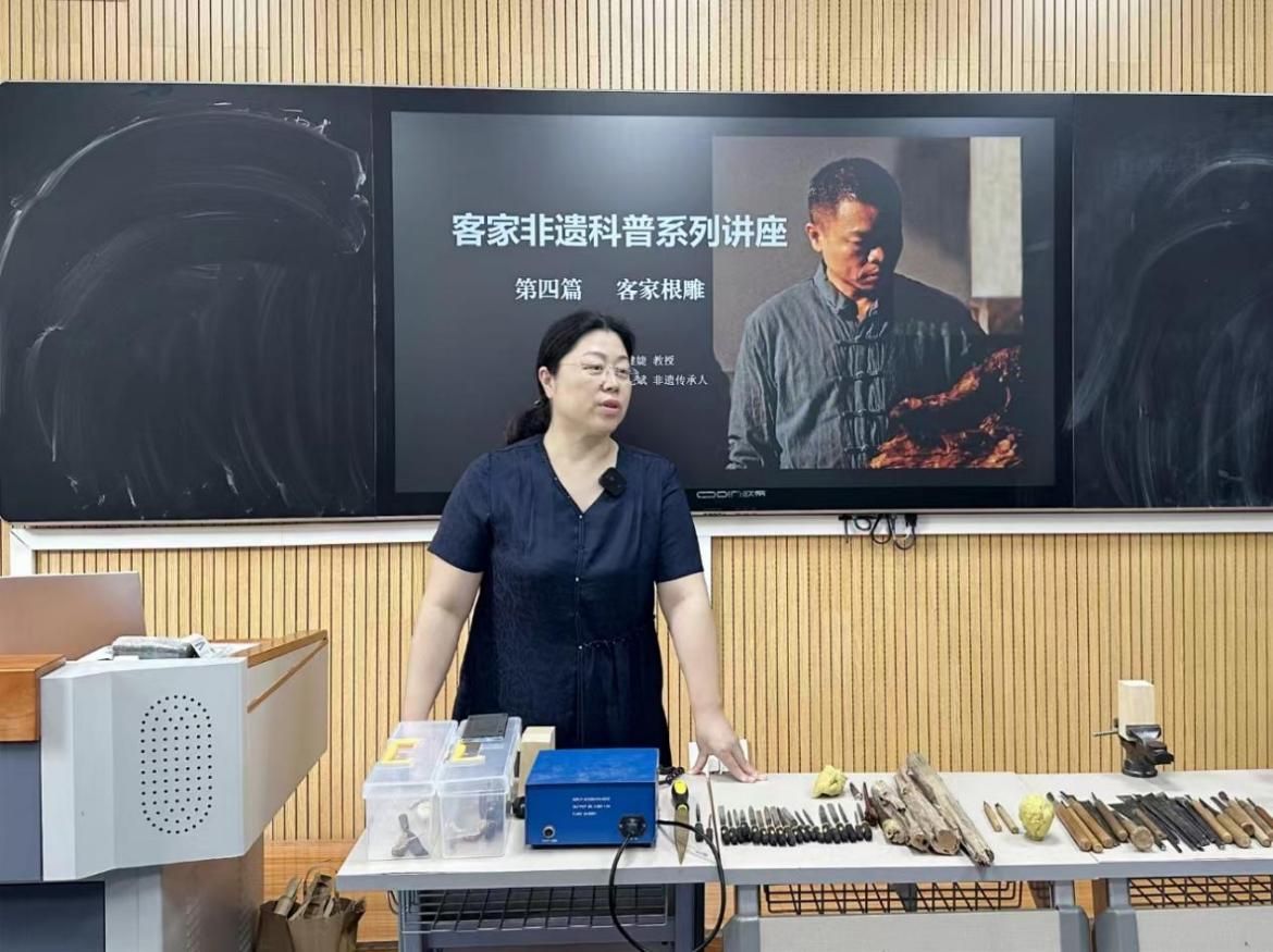 本网讯:为全面贯彻五育并举的教育理念,加强新时代劳动教育,深植爱国情怀,增强文化自信。5月23日和24日下午,买球体育官方网站于红旗校区鹏程楼211、212开展了非遗进校园系列特色劳动教育课暨非遗科普宣传“客家根雕”讲座,讲座由买球体育官方网站行政负责人高健婕教授和“客家根雕”非遗代表性传承人付先斌共同主讲。