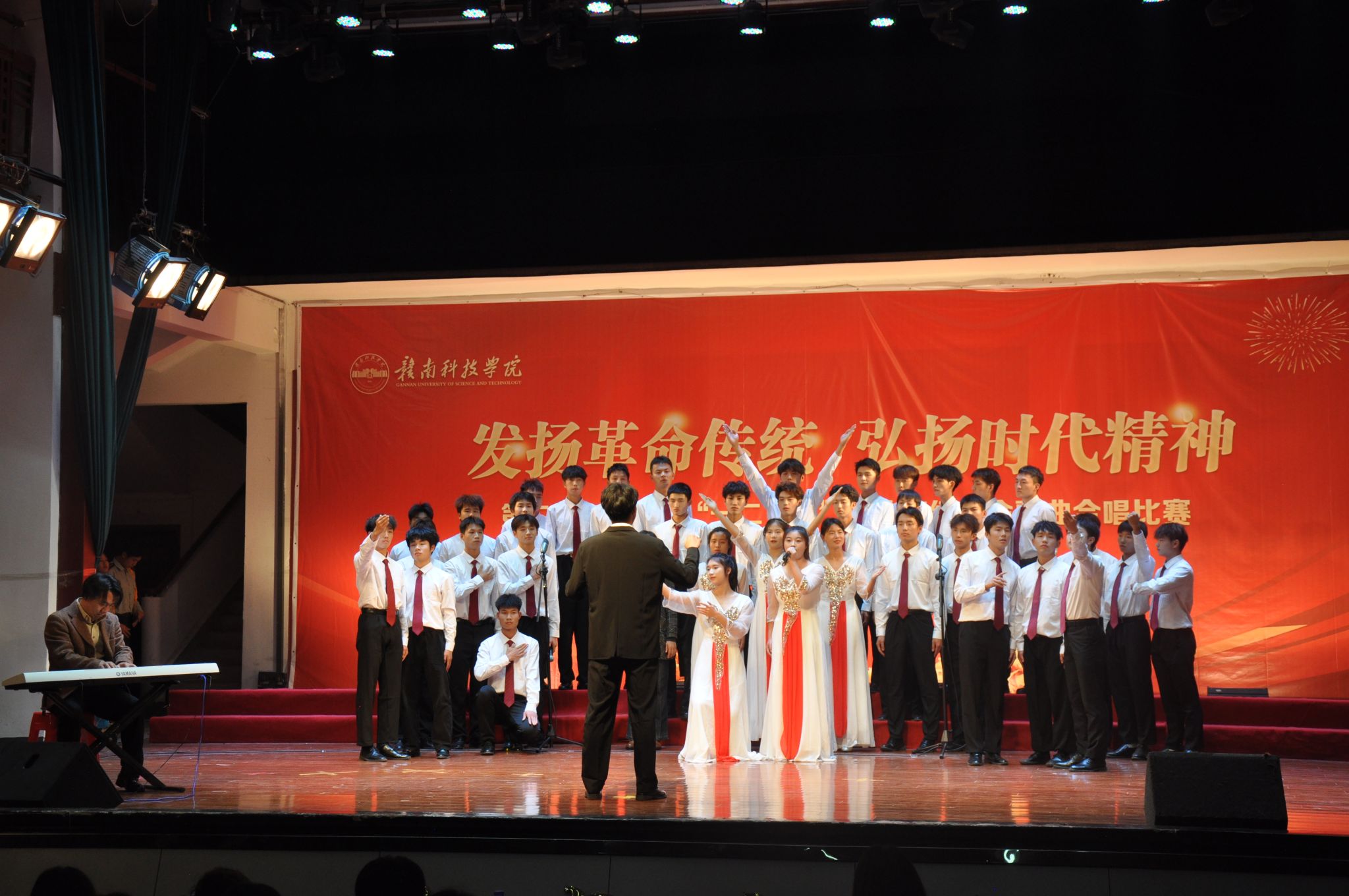 为纪念“一二·九”学生爱国运动88周年,培养买球体育青年大学生“爱党、爱国、爱校”的情感,唱响“共产党好,社会主义好,改革开放好”的时代主旋律。11月25日、26日,人文科学系在红旗校区大礼堂、黄金校区冶金广场两个赛点举办了“一二·九”革命歌曲大合唱比赛。比赛由学院后勤保卫办刘姝含老师,学院思政部徐帆老师,学院团委肖玉洁担任评委,人文科学系全体师生共同观看本次大赛。
