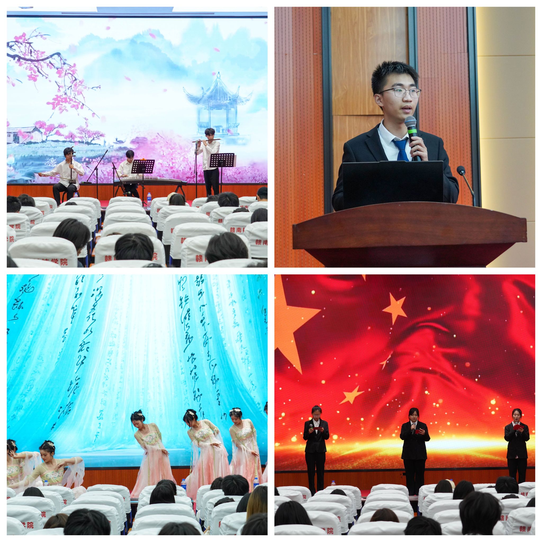 校团委器乐队胡济梁、曾曦、张俊杰带来器乐合奏《寄明月》,融合传统与现代,谱写爱国长歌。视觉232团支书杨彦坤讲授团课《苏区红魂耀千秋》,弘扬抗战精神。徐文婷、张晓晗演绎古典舞《盛世》,展现时代瑰丽。买球体育官方网站“薪火”宣讲团朗诵《薪火相传担重任》,传承先辈精神。