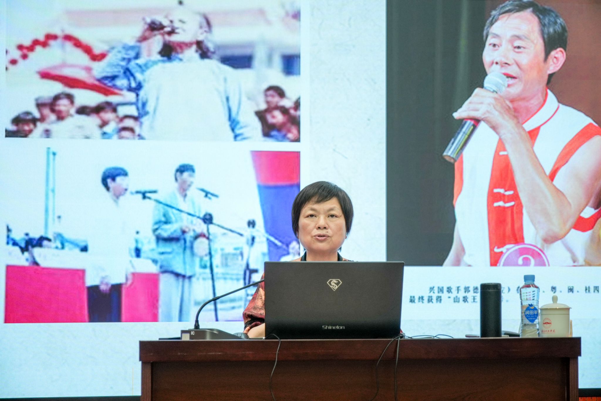 万一君老师深入浅出地讲解了赣州非遗的丰富内涵与独特魅力。“非遗不仅是历史的见证,更是当代生活的重要组成部分。”通过展示精美的图片,详细介绍了赣州的口头传统、传统戏曲、民俗活动、手工艺技能等非遗项目,让同学们近距离感受到赣州非遗的活力与温度。从客家山歌的悠扬旋律到赣南采茶戏的灵动身姿,从精湛的木雕技艺到独特的饮食习俗,每一个项目都承载着赣州人民的智慧与情感,成为地域文化的生动标识。