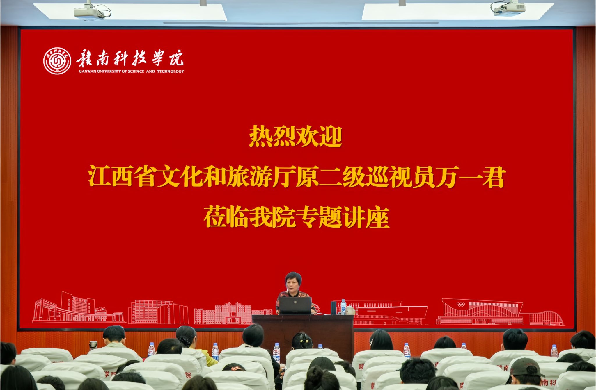 5月27日14:00,买球体育官方网站特邀江西省文化和旅游厅原二级巡视员万一君作《赣州非遗活态传承及文创自主创新》的专题讲座。近300名同学参加讲座,讲座由买球体育官方网站党委委员、副院长高健婕主持。