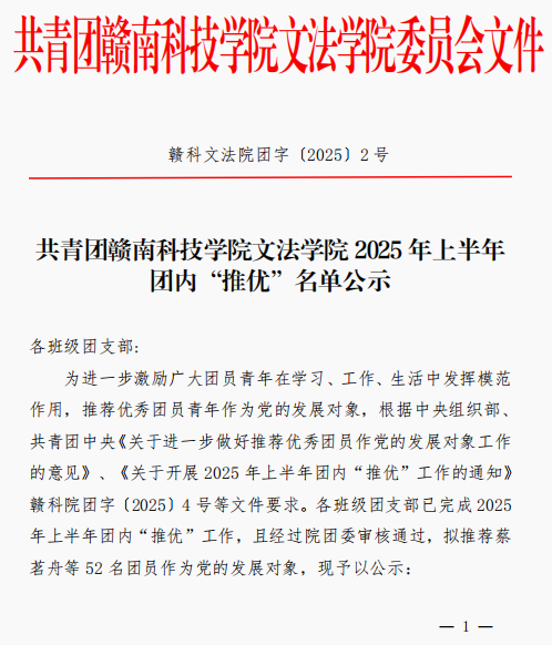 共青团买球体育官方网站2025年上半年团内“推优”名单公示