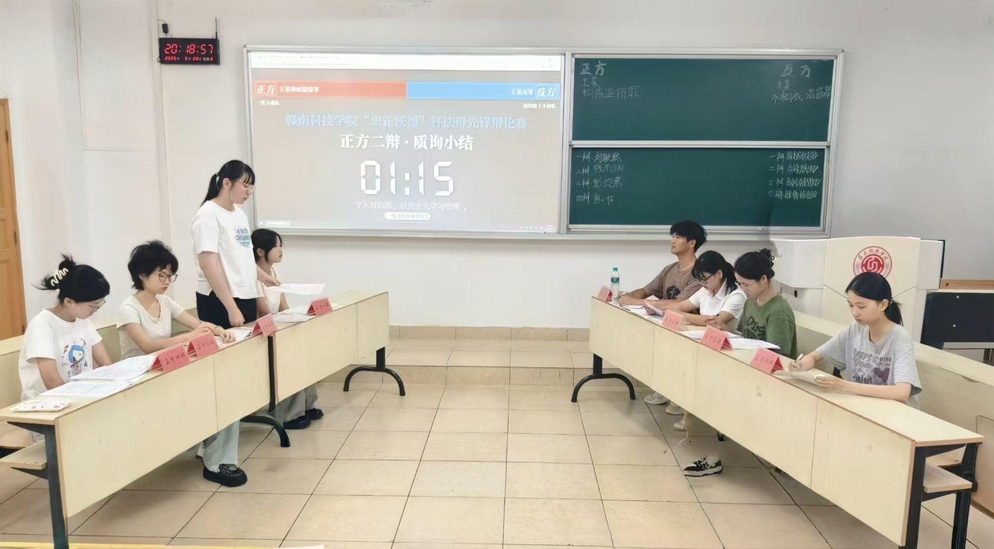 本网讯:9月28日晚上,买球体育普法社、演讲与辩论协会联合江西求正沃德(赣州)律师事务所,共同举办“求正沃德”杯法辩先锋辩论赛初赛。来自法学专业的16支参赛队伍围绕民生法律热点展开激烈交锋,以专业思辨展现青年学子的法律素养与逻辑风采。