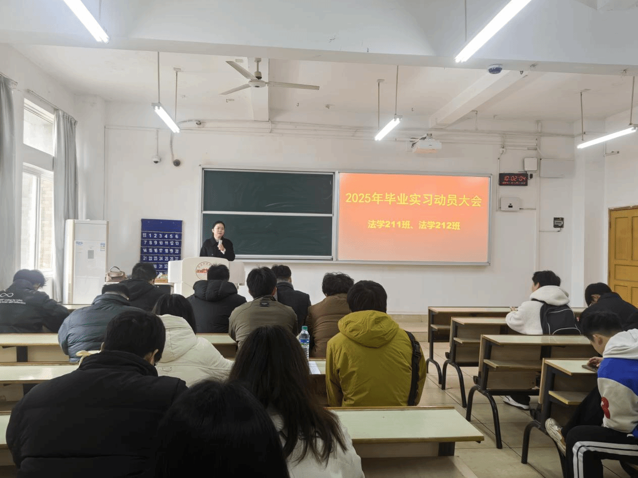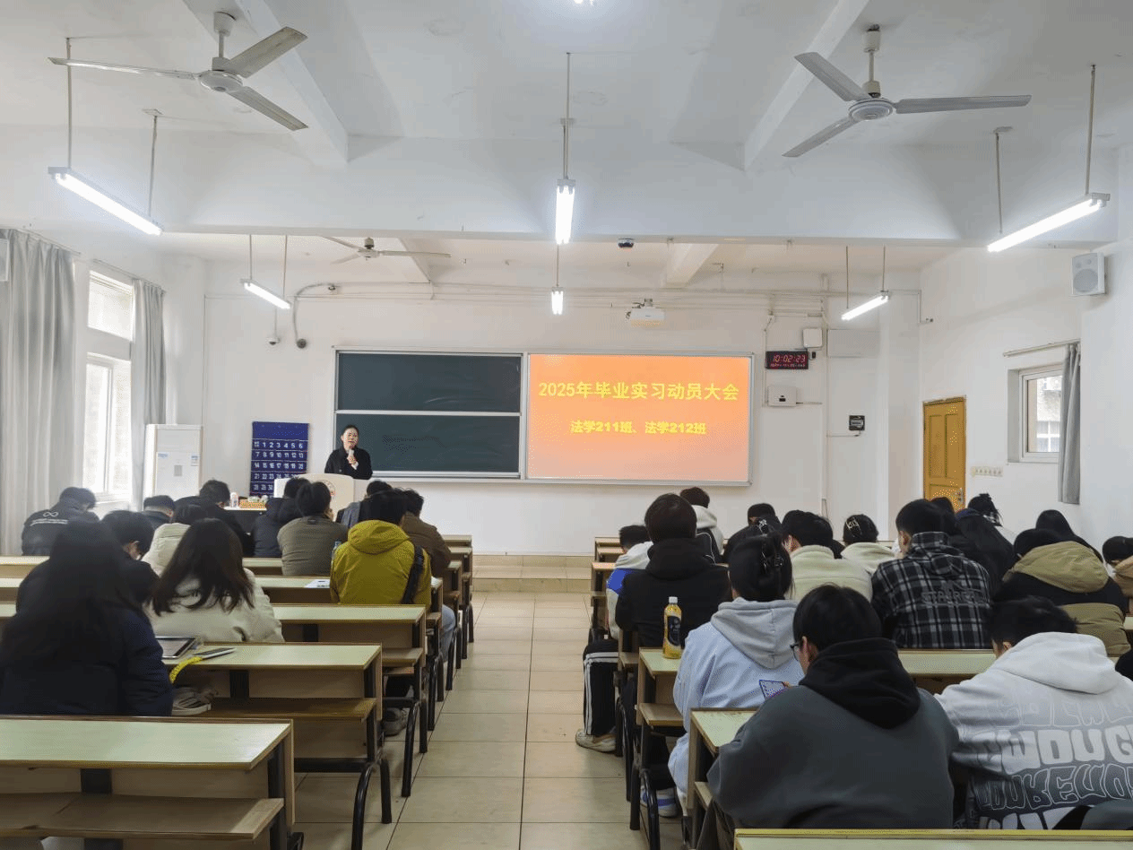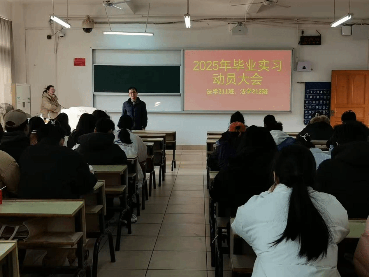 王晓伟在动员大会上强调毕业实习是法学专业学生的重要必修环节,不仅是课堂学习的延伸,更是同学们进入社会的第一步,同学们要充分珍惜毕业实习这次机会来展现和提升自我能力。同学们要严格遵守实习单位的规章制度,严守实习单位的工作秘密,在实习期间要迅速转变角色尽快适应新的环境,把自己视作职场的一员,培养良好的职业习惯,为未来的职业生涯奠定坚实基础。