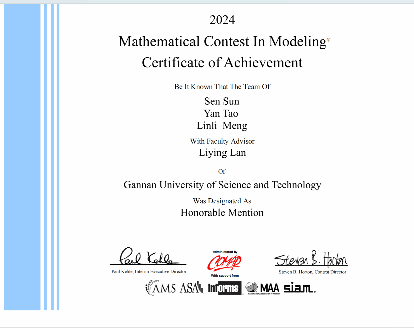 美国大学生数学建模竞赛(MCM/ICM)是 Mathematical Contest In Modeling 和 Interdisciplinary Contest In Modeling 的缩写。MCM 始于 1985 年,ICM 始于 2000 年,由 COMAP(the Consortium for Mathematics and Its Application,美国数学及其应用联合会)主办,得到了 SIAM,NSA,INFORMS 等多个组织的赞助。