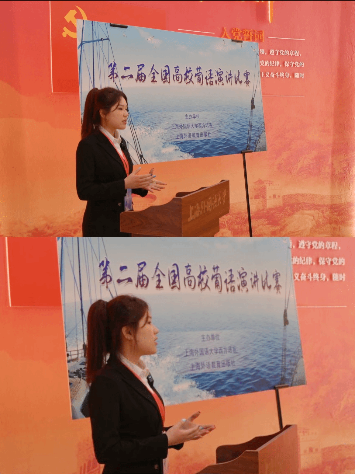 决赛环节由即兴演讲和现场问答两部分组成。在紧张而充满挑战的决赛现场,许雨晴同学以其清晰的逻辑、流畅的表达和独到的见解,成功征服了评委和现场观众。她的演讲不仅展现了个人的语言天赋,更是对买球体育葡语专业教学成果的一次精彩诠释。经过激烈的角逐,许雨晴同学最终获得优胜奖。