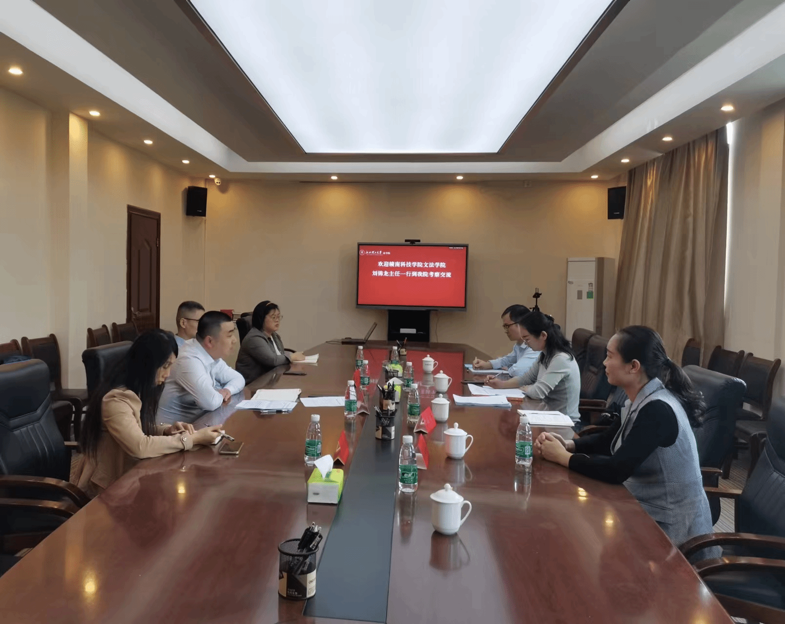 为提升法学专业人才培养质量,10月31日下午,人文科学系法学教研室主任刘翛然一行赴江西理工大学法学院进行考察调研。法学教研室副主任张兰芳、法学专业教师温美芬、欧阳东参加了此次调研。调研活动得到了江西理工大学法学院的热情接待,双方以座谈会的形式进行了深度的沟通交流。