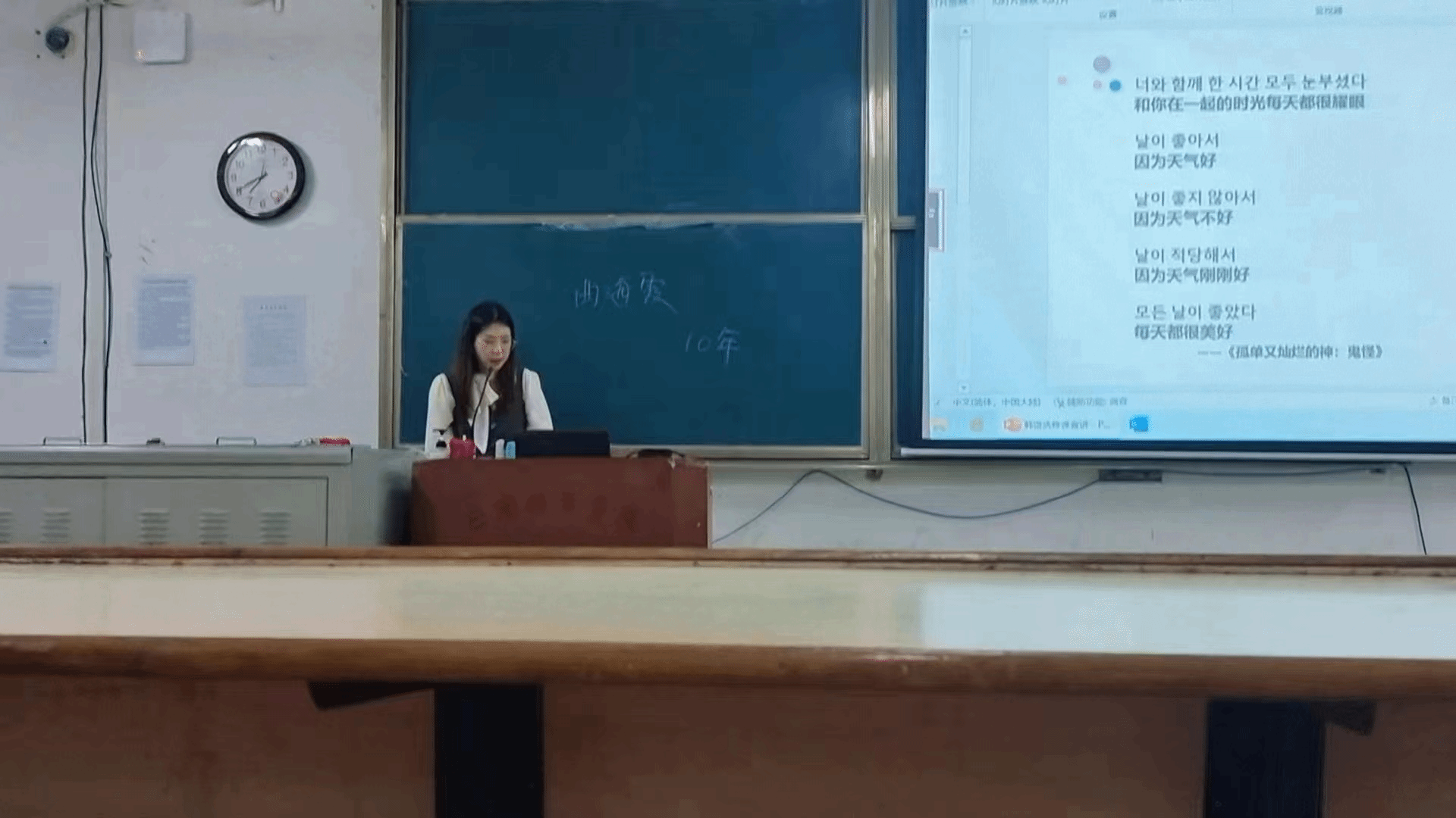 交流会上,四位老师依次介绍日语、法语、韩语、葡语学习的难易程度以及未来的职业发展方向。黄光琳采用了交流互动的形式来为同学们解答对日语学习的疑惑,姬海菲制作了详细的PPT来向同学们全面介绍法语,曲海霞和邓秋晨则是结合PPT以及自身的工作经验来介绍韩语和葡语。