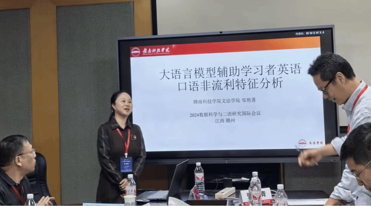 邹艳菁报告的论文题目为《大语言模型辅助学习者英语口语非流利特征分析》,论文研究了将大语言模型这一前沿科技与英语口语学习领域相结合,为分析英语口语非流利特征开辟了新路径,有助于更精确地剖析学习者在口语表达中存在的障碍,为后续的教学干预和学习策略改进提供了更有价值的依据。邱敏报告的论文题目为《实证类学术论文的语类布局研究》,论文通过自建语料库,探索物理学及语言学实证论文的语类布局特征,研究发现两门学科的实证论文在基础语类的总体布局及分阶段布局方面均存在差异,研究结果拓展语类理论的应用范围,为学术写作教学以及教材编写提供指导。谢丽琴报告的论文题目为《乡土文学译介与国际传播研究——以《边城》为例》,论文聚焦乡土文学,乡土文学作为中国文学的重要组成部分,承载着丰富的地域文化和民族情感。在全球化的背景下,乡土文学的译介与国际传播对于弘扬中国文化、促进跨文化理解具有重要意义。万文娟老师的论文“A Study on the Effect of Block Approach on the Improvement of English Majors’ C-E Interpreting Ability”进行了海报展示,论文深入探讨了基于语块的语言教学在提升英语专业学生汉译英口译技能方面的潜力。通过研究语块如何促进翻译和口译过程,旨在评估它们在提高学生在汉译英口译任务中的准确性、流利度和整体表现方面的有效性,这一观点为相关领域的研究开辟了新的视角,引得不少同行驻足观看、讨论。