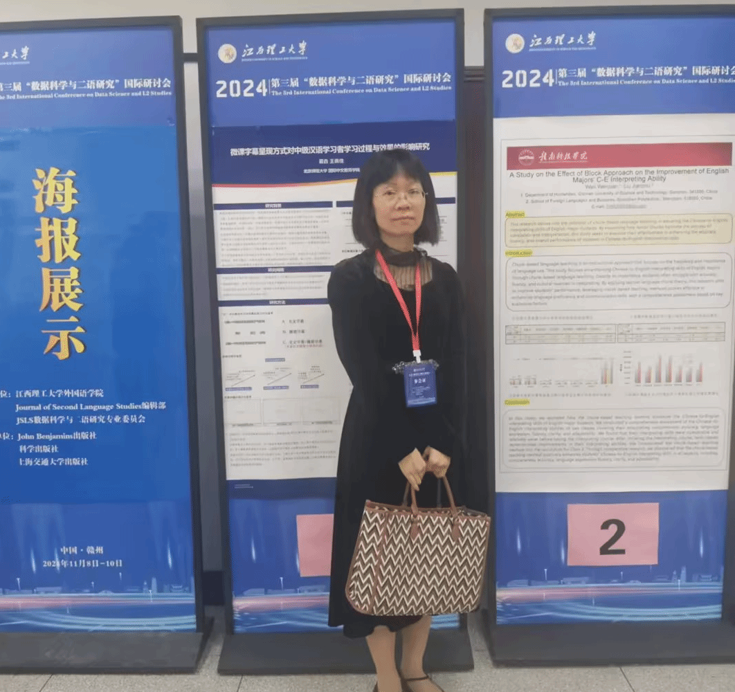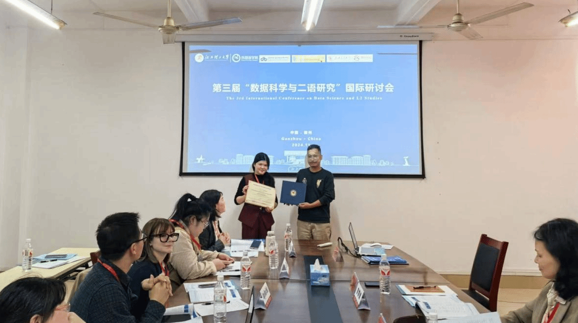第三届“数据科学与二语研究”国际研讨会于2024年11月8日在江西理工大学成功举办,海内外200多名专家学者齐聚一堂,就“二语研究者的语言数据科学素养”这一主题开展研讨交流。买球体育官方网站组织12名外语教师参会,其中邹艳菁、邱敏、谢丽琴等三位老师在会上报告了论文,万文娟老师进行了论文海报展示。