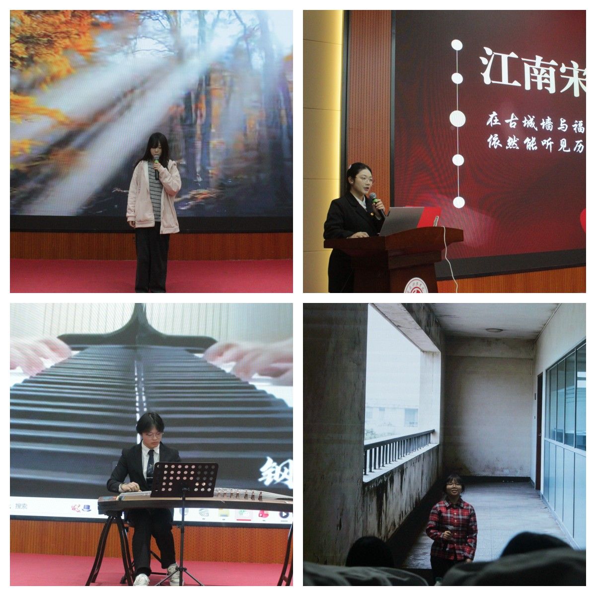 第二篇章以杨雨青同学演唱的歌曲《落叶归根》开场,歌声悠扬动人,寄托着对家国的深情。黄怡祺同学以《一滴萃取液里的青春答卷》为题,结合专业学习与青春实践,讲述青年如何在科研中践行报国之志。胡济梁同学的乐器演奏《定风波(片段)》以古典乐韵传达出镇定从容、奋发向上的精神风貌。最后,由贺雨轩、吴世博等同学表演的话剧《山花开》,以细腻的表演展现了艰苦奋斗、生生不息的民族精神,为活动画上圆满句号。