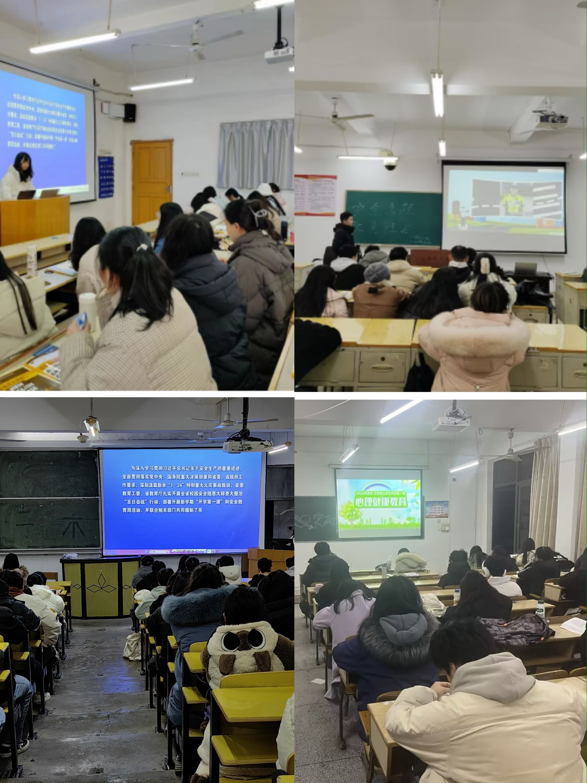 通过观看消防安全教育视频,了解消防安全标志、灭火器使用方法等引导学生了解火灾的危害和安全预防措施,给学生传授正确的逃生方法。食品安全教育课,除了让学生了解到食品安全相关知识,还提高了学生们的食品安全意识和自我防范能力。与此同时,各辅导员、班主任组织班级围绕预防心理疾病、防火防盗、防诈骗等方面对同学们进行安全强化教育,通过实例结合的方式,让同学们学习到许多安全知识,认识到在日常生活中防患于未然的重要性,有效地帮助同学们树立良好的安全防范意识,培养安全观念,从而做到居安思危、在遇到危险时能够及时做出相应的安全措施。