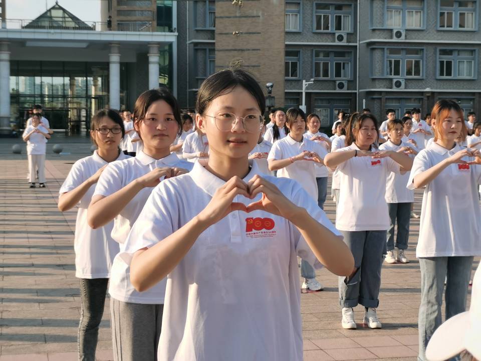 为热烈庆祝中国共产党成立100周年,向党的百年华诞献礼,在七一前夕,人文科学系组织近300名学生在广场展演《我和我的祖国》手势舞,回顾党的光辉历程,讴歌党的丰功伟绩,为党庆生,向党致敬!