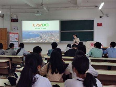广州节节通科技有限公司人事经理刘颖介绍了公司的核心业务(CAWDO)、企业文化及未来战略规划,并围绕国际化人才培养、职业发展路径、岗位需求等内容与同学们展开互动交流。同学们还通过观看公司的宣传片,深入了解了企业的创立背景、发展历程及全球化业务布局。现场气氛热烈,多名学生与公司初步达成就业意向。