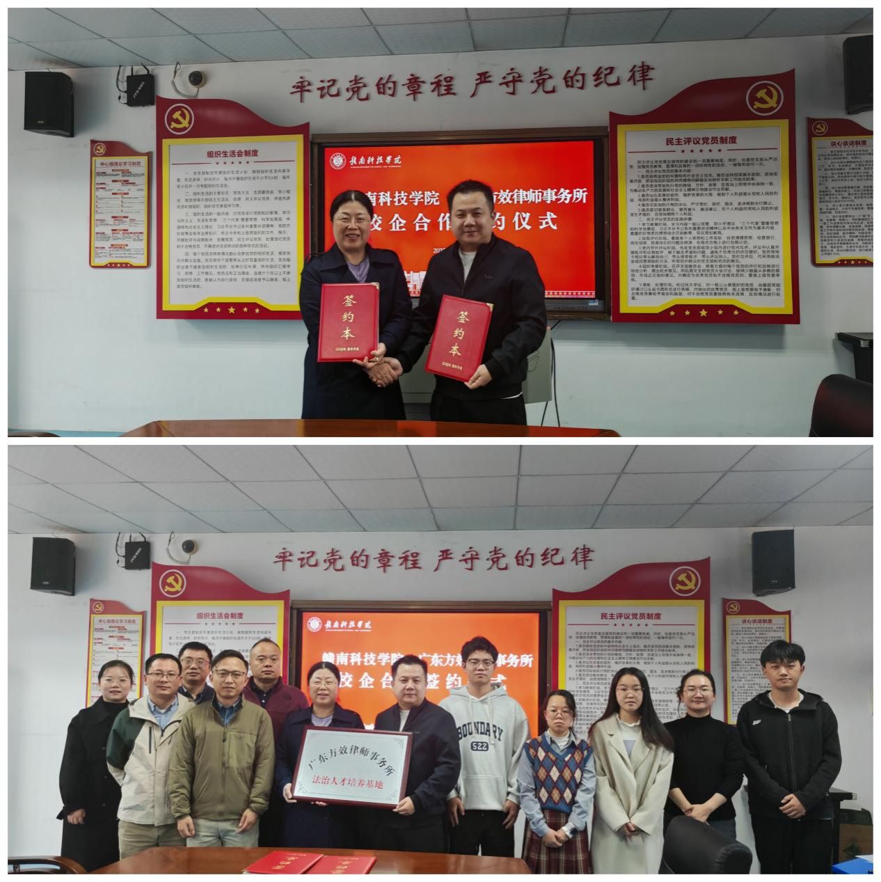 高健婕和广东方效律师事务所执行主任陈俊代表校所双方签署了《买球体育官方网站 广东方效律师事务所合作共建协议》,并进行了“广东方效律师事务所法治人才培养基地”与“买球体育官方网站实践教学基地”揭授牌。