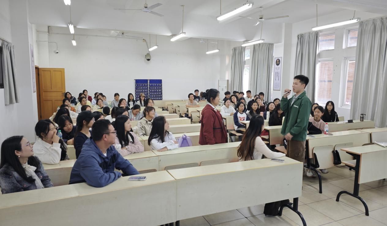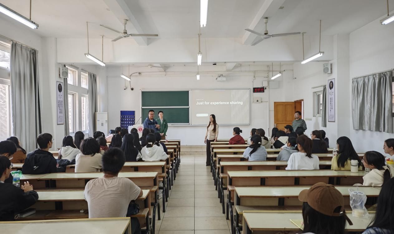 讲座中,优秀校友凌青和冯涛通过自身角度分享求职经历,并通过生动的行业案例打破了学生对“外语专业就业窄”的认知误区,展现了外语学科多元发展的可能,更将职场视角引入校园,让学生提前触摸行业需求与发展脉搏,有助于同学们明晰就业方向及职业规划,提升就业竞争力。在随后的互动环节中,同学们踊跃提问,围绕英语专业就业的行业前景及未来发展方向与优秀校友进行了深入交流,现场气氛热烈。